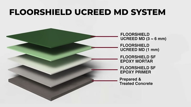 Nippon Paint FloorShield UCREED MD is a medium-duty polyurethane-cement flooring system designed for food-safe environments such as hospital kitchens and other hygiene-sensitive areas.