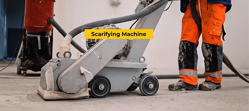 The process began with surface preparation using a scarifying machine to clean, roughen, and open up the surface. This is essential because proper preparation improves grip and supports long-term durability of the new floor system. In flooring, poor preparation often leads to poor performance, so this first step is critical.