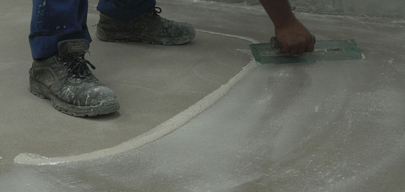 The leveling of FloorShield SF Epoxy Mortar using a power trowel